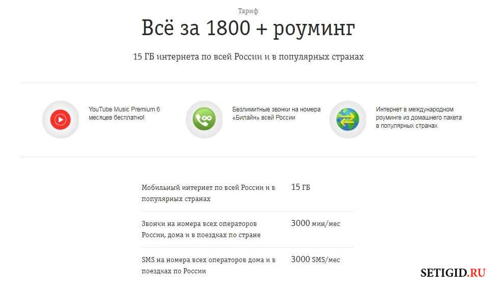 Билайн «Все за 1800 + роуминг»