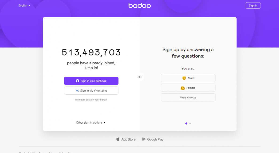 Социальная сеть знакомств, поддерживающая множество языков и работающая с пользователями всех стран мира. Главный офис компании располагается в Сохо, Лондон, однако сама компания зарегистрирована на Кипре. Здесь можно найти пользователей не только из городов постсоветского пространства, но и со всех уголков мира.