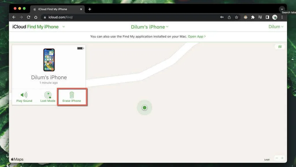 - Откройте приложение «Локатор» на другом устройстве Apple, например на iPad или Mac. Или войдите в iCloud.com в веб-браузере и выберите «Локатор» — вам все равно придется аутентифицировать свои действия с помощью доверенного устройства Apple, если вы ранее не «доверяли» браузеру.
