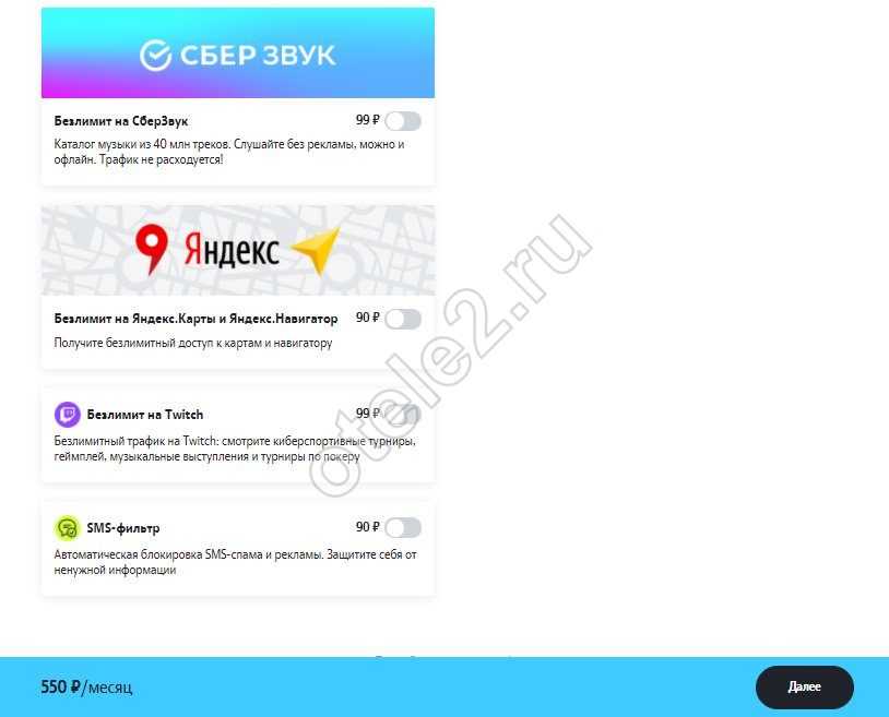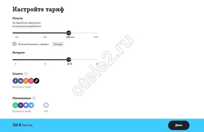Также доступна дополнительная настройка тарифа на сайте оператора.