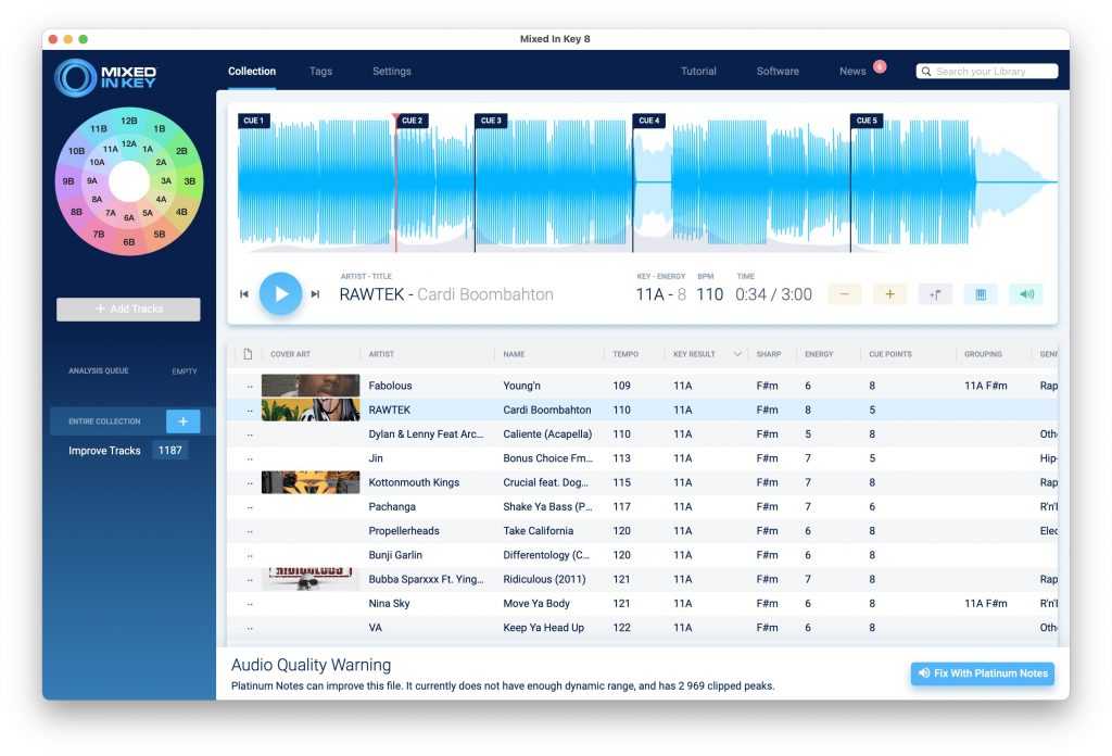 Это приложение поможет определить тональности песен из вашей библиотеки. Во многих диджейских программах уже есть автоматическое определение тональностей, но Mixed In Key справляется с этой задачей гораздо лучше. Внутри приложения есть встроенная клавиатура (пианино) для проверки определенных тональностей, или определения вручную.