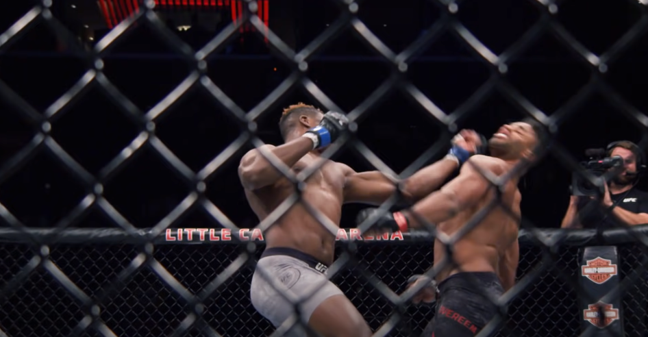 Надо сказать, что оба бойца отличаются своими нокаутерскими особенностями. Кроме того, оба они тяжи, но тяжи скоростные, резкие. Это не Брок Леснар, который задыхался во втором раунде и кроме выдержки и характера уже ничего не показывал во второй половине боя. Да, Оверим сейчас находится на спаде, но в те годы он был нахимиченным и опасным. Но напористый, мощный и прошедший долгий путь, Нганну – это нечто. Не зря он неоспоримый чемпион UFC на текущий момент. В бою с Оверимом произошла мощная зарубка, но будучи базовым боксером, Нганну выигрывал «перестрелку». Тогда Оверим решил действивать на уклонение, но Нганну поймал его на шикарный апперкот, в момент отхода. Учитывая мощь бойца, нокаут был просто невероятным.