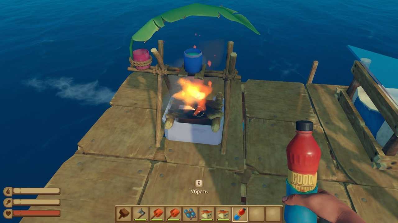 Вода – самый важный ресурс в Рафт. Без нее игровой персонаж, достигнув высокой степени жажды, погибнет. Чтобы получить питьевую воду, нужно смастерить два предмета: кружку или бутылку и очиститель для воды.