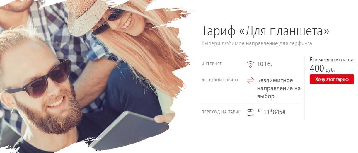 Для жителей Санкт-Петербурга и области МТС предлагает тариф «Для планшета» — качественный интернет за 400 руб./мес., в который входят: