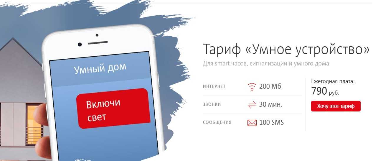 В том случае, если вы не купили SIM-карту с тарифом, а перешли на него с другого тарифного плана, опция «Умное устройство на год» не подключается автоматически. В этом случае подключите ее самостоятельно с помощью USSD команды.