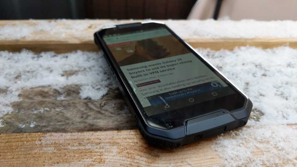 Единственный защищенный смартфон IP68, получивший инфинити-экран с «монобровью». Это очень неплохой мобильник со сбалансированной аппаратной начинкой и демократичным ценником. Вес устройства 228 грамм, а толщина корпуса 13 миллиметров.